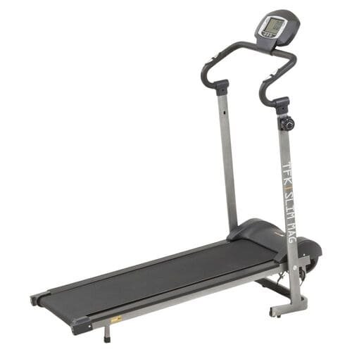 Bėgimo takelis Everfit TFK-SLIM-MAG, tai puikus modelis skirtas sportuoti namuose. Treniruoklis sulenkiamas, todėl itin kompaktiškas ir patogu laikyti mažesnėse patalpose. Treniruoklis turi 2 smagračius, kuri bendras svoris 6kg., tai užtikrina tolygų ir tylų bėgimo takelio veikimą.